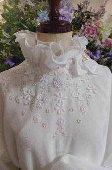 胸元に小花を散りばめたエンディングドレスです。