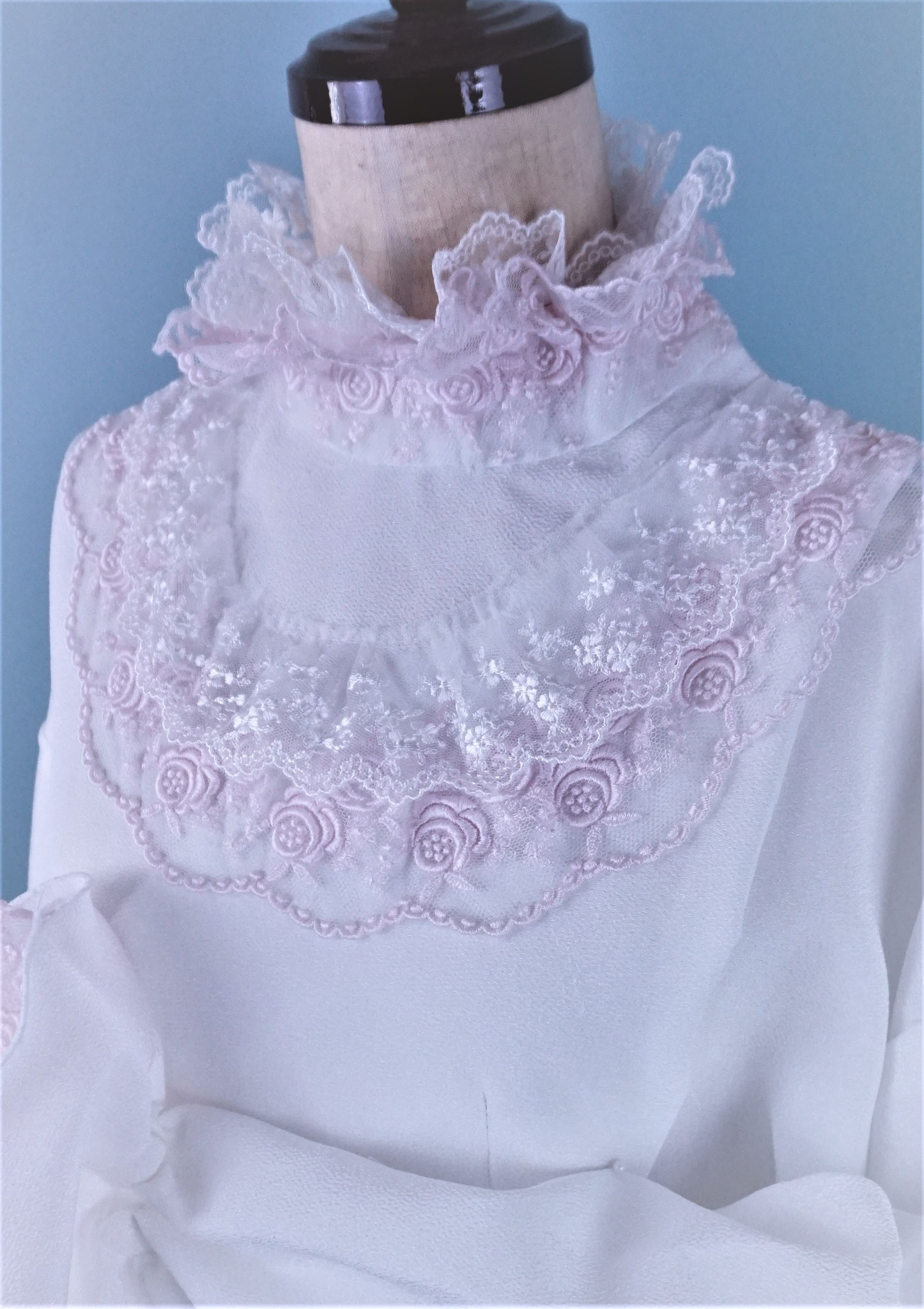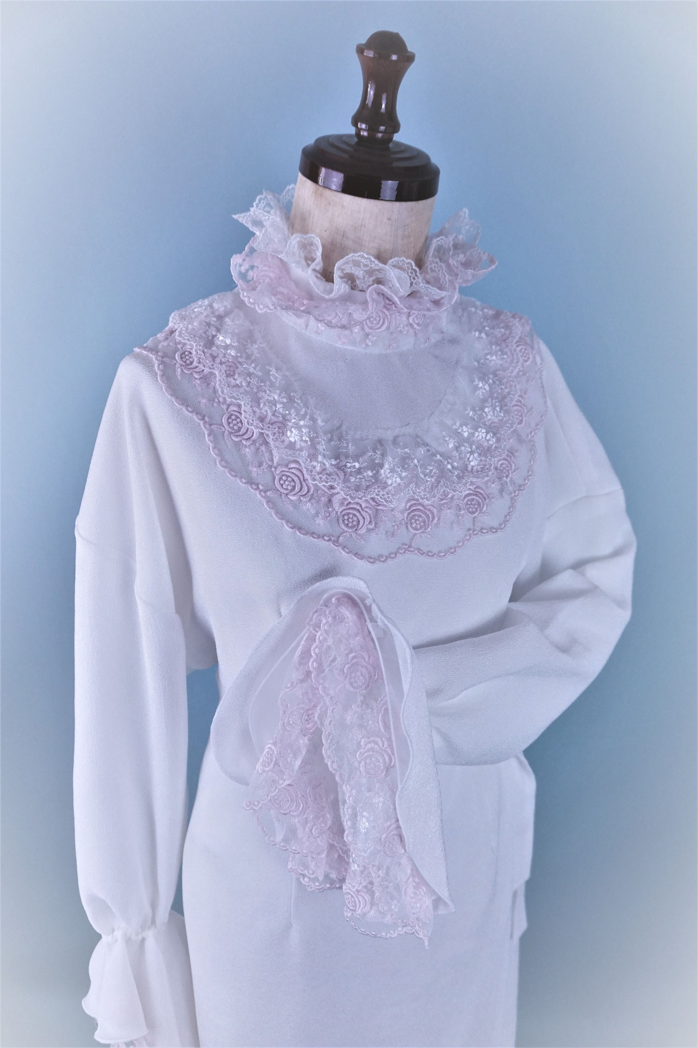 胸元のレースは大人可愛いいパープルピンクに手染めしてみました。大人可愛い清楚なドレス。